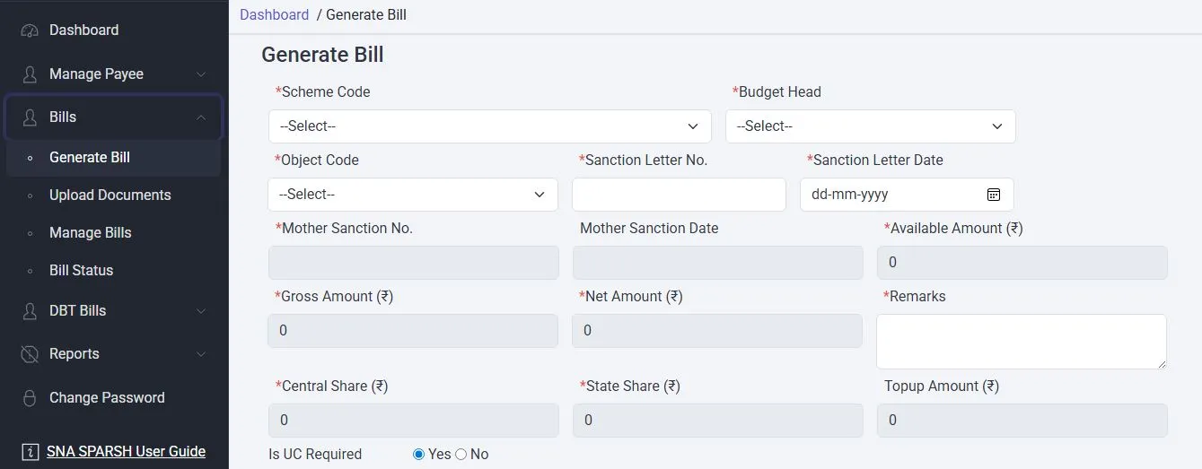 Now the next page appears where you have to upload your bill in voucher and sanction in order.